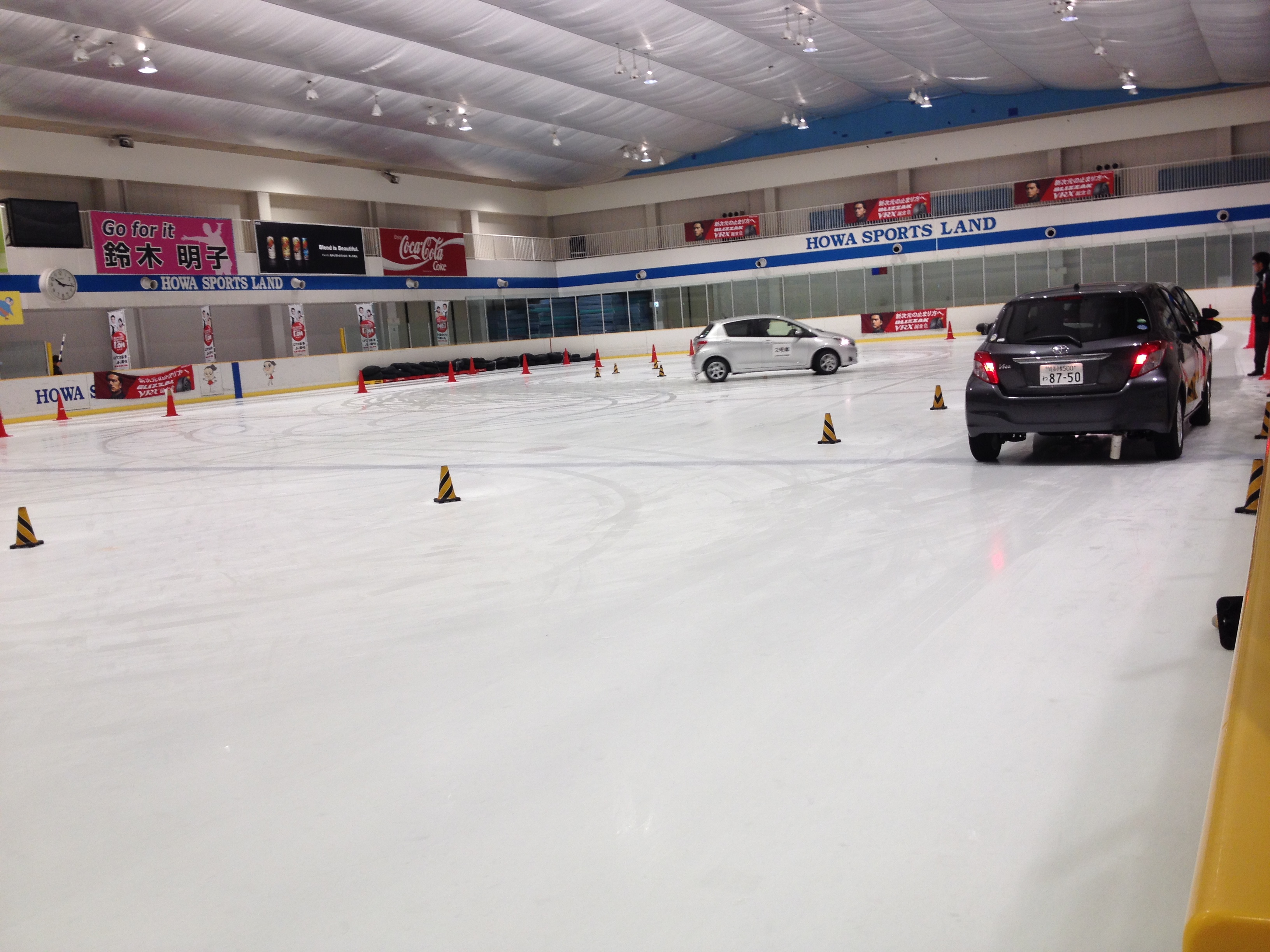車両はヴィッツ3台が用意してあり、装着タイヤはY社スタッドレス、D社スタッドレス、VRXの三種のタイヤを装着しての試乗会でした。